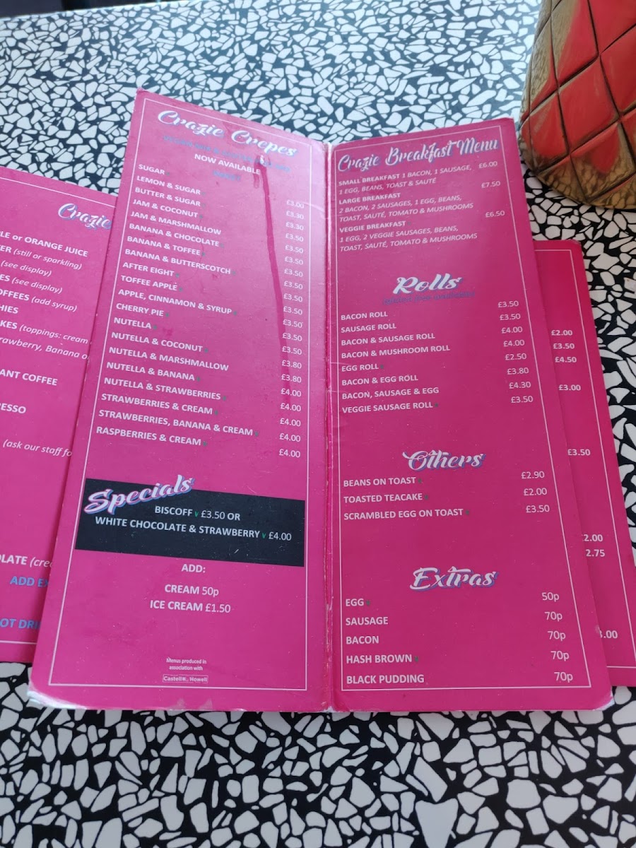 Welcome to Crazie Crepes Cafe, nestled in the scenic Harbour of Burry Port, where mouthwatering flavors and delightful ambiance meet. Our menu is a celebration of indulgence, featuring crispy sides like cheesy and loaded chips, perfect for sharing or satisfying your cravings. But the real stars are our freshly made crepes; guests rave about our scrumptious selections, including the well-loved strawberry and vanilla ice cream crepe.